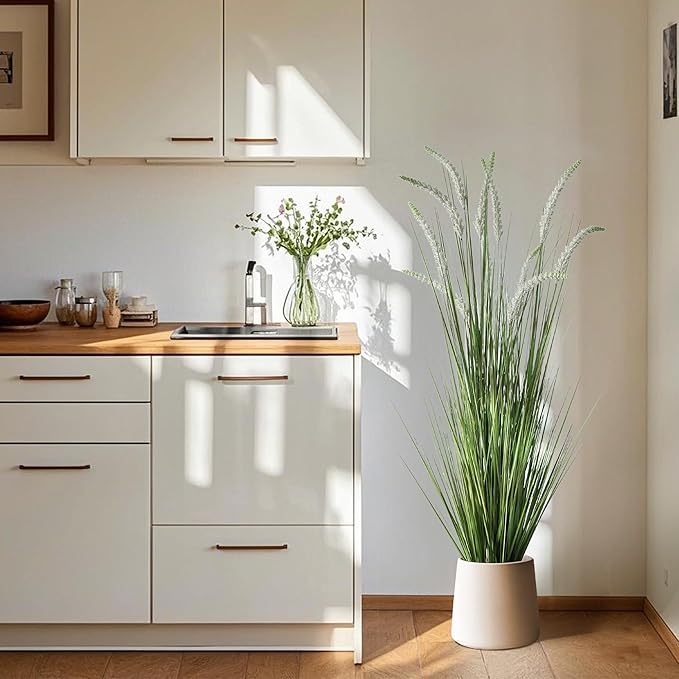 KOL 59in 2-Pack Artificial Veronica Spiked Speedwell Grass Plant, 5ft Faux Veronica Spicata Flower, Tall Fake Horsetail Grasses for Home Office Garden Wedding Decor, Indoor Outdoor, Yellow