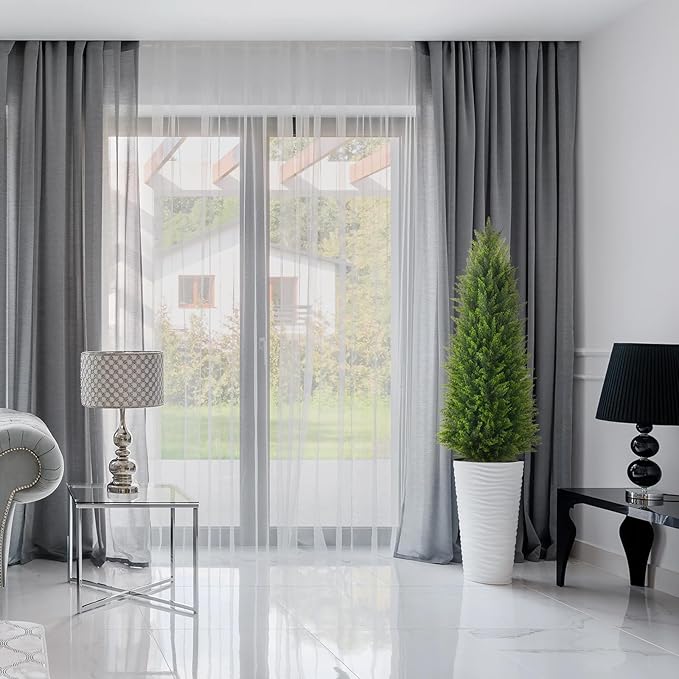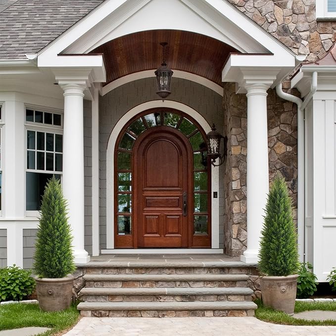 4FT Artificial Cedar Topiary Trees (2 Pack) - UV Resistant Fake Evergreen Shrubs with Extra Dense Foliage, Realistic Potted Faux Plants for Front Porch & Garden Decor
