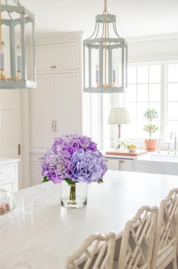 Hollyone Purple Hydrangea Artificial Flowers in Vase Latex Real Touch Large Faux Hydrangea Flowers Arrangements Hydrangeas Fake Flower with Glass Vase with Faux Water for Table Centerpiece Home Decor