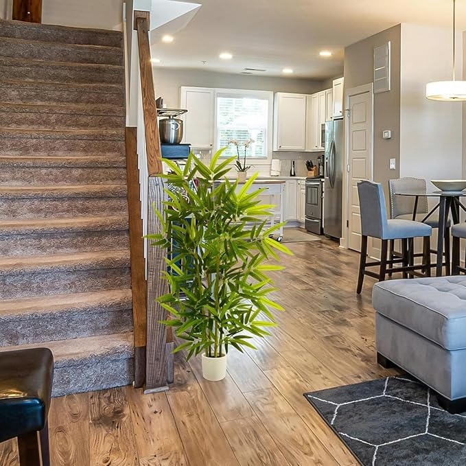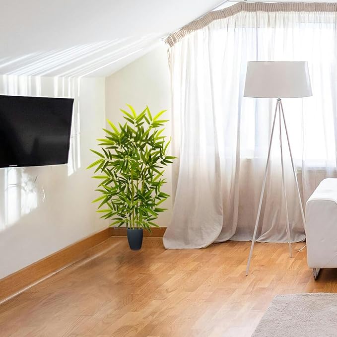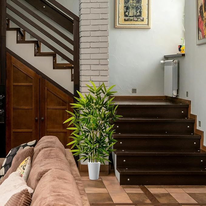Artificial Bamboo Tree, 4ft Tall Faux Bamboo Plant with White Planter, Fake Trees with 4 Trunks and Lifelike Leaves for Indoor Outdoor Home Office Décor