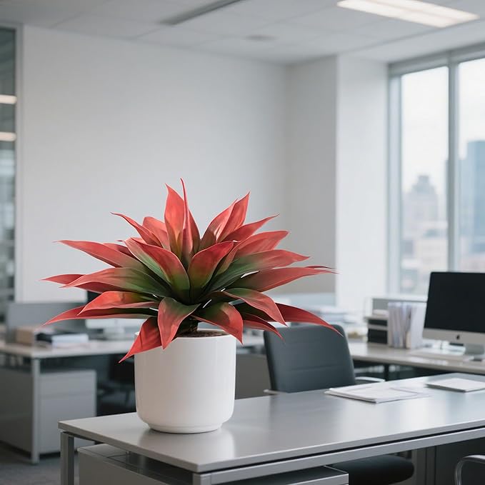Artificial Agave 22" Faux Agave Fake Greenery Outdoor Artificial Plant Fake Plant for Indoor Home Decoration Plastic Plant Outdoor Decor Front Porch Decor Simulation Plants (Red 2Pcs) No Vase