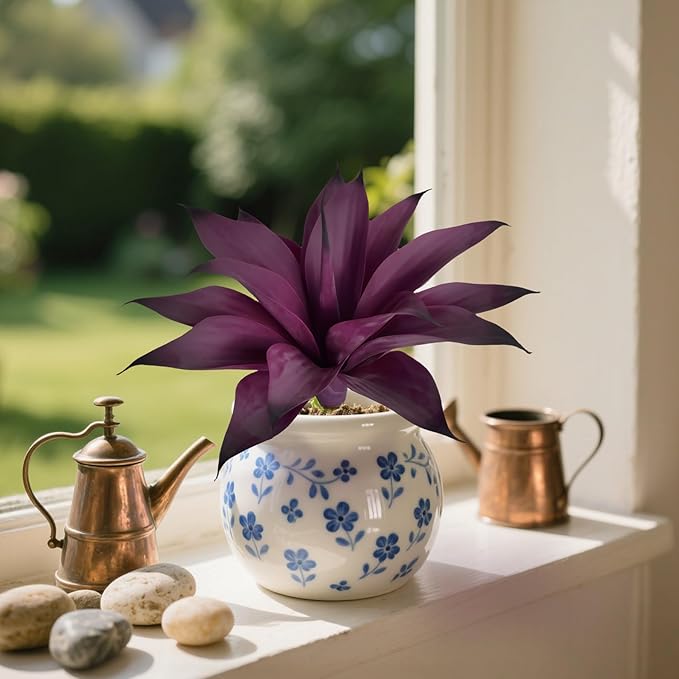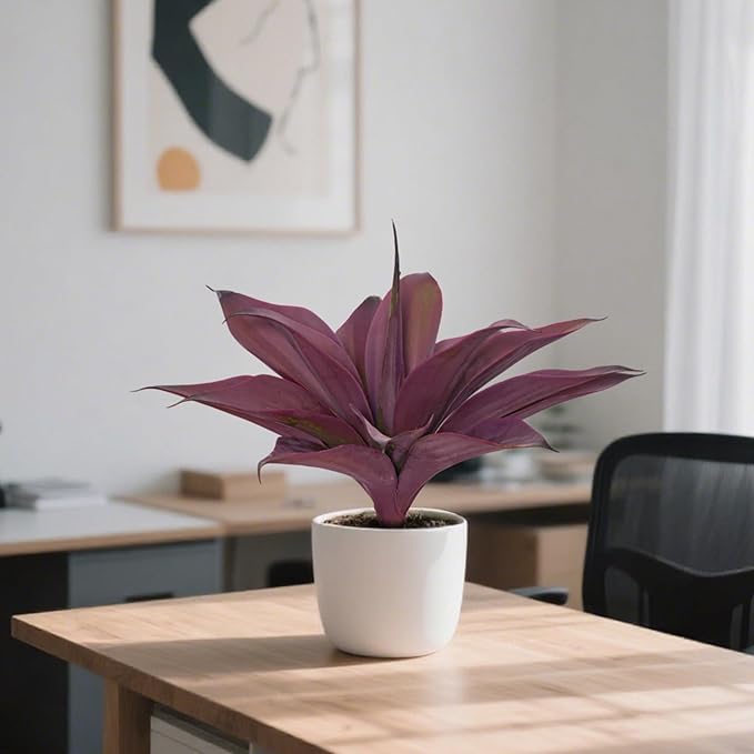 Artificial Agave 15In Faux Agave Fake Greenery Outdoor Artificial Plant Fake Plant for Indoor Home Decoration Plastic Plant Outdoor Decoration Front Porch Decor Simulation Plants 2Pack,Purple