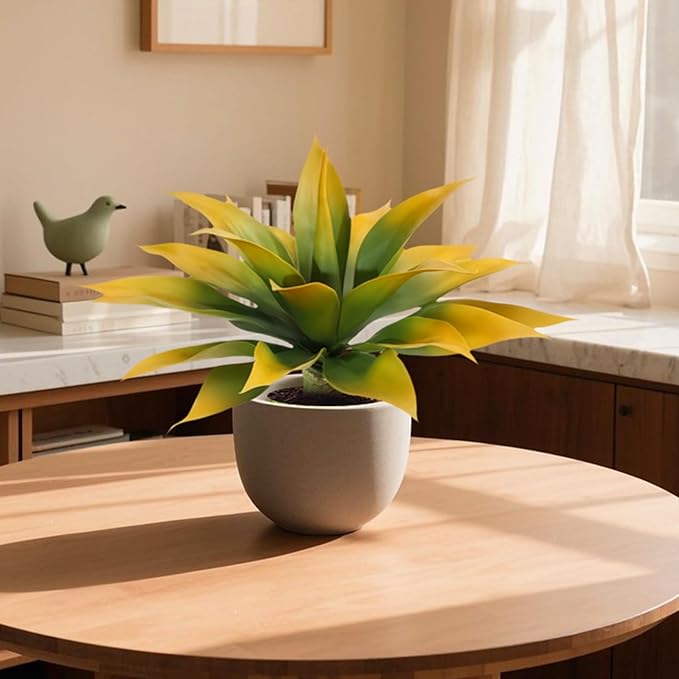 Artificial Agave Faux Agave Fake Greenery Outdoor Artificial Plants Fake Plants for Indoor Home Decoration Plastic Plants Outdoor Decor Front Porch Decor Simulation Plants 18In(Yellow) 2Pack