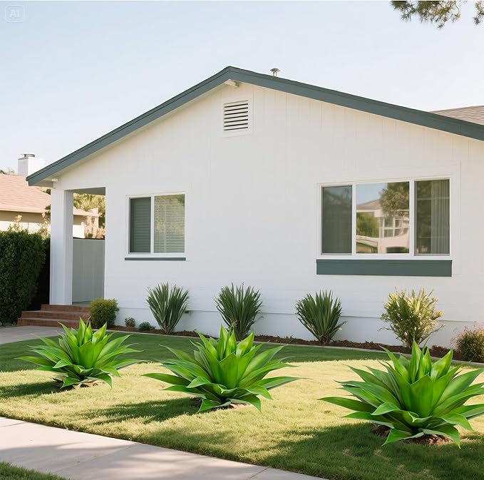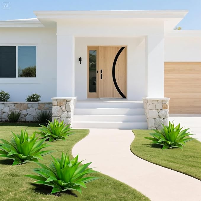 Artificial Agave Faux Agave Fake Greenery Outdoor Artificial Plants Fake Plants for Indoor Home Decor Plastic Plants Outdoor Decor Front Porch Decor Simulation Plants 22"(2Pcs Green) No Vase