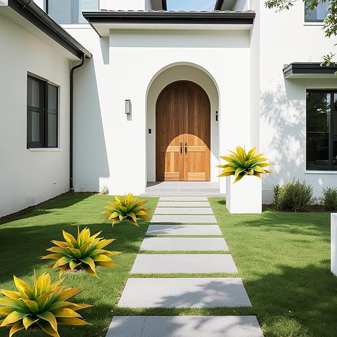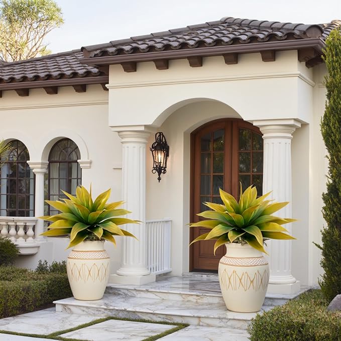 Artificial Plants Outdoors Faux Agave Fake Greenery Outdoor Artificial Plant 28" Fake Plant for Indoor Home Decor Plastic Plant Outdoor Decor Front Porch Decor Faux Cactus(Yellow 2Pcs)No Vase