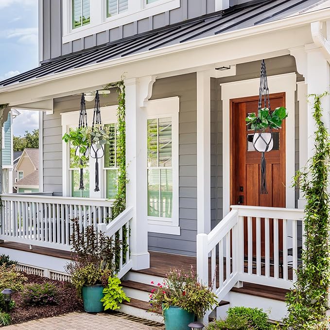 Sorbus Macrame Plant Hanger (8 Pack) Indoor Outdoor Hanging Plant Pots Cotton Rope, Elegant for Home, Patio, Garden (Black)
