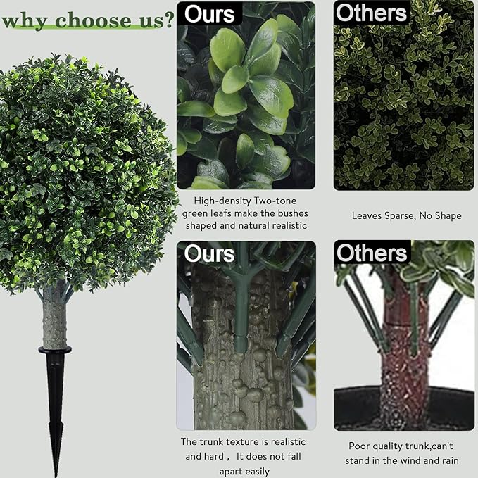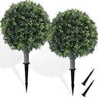 16" Artificial Boxwood Topiary Trees, UV Resistant Outdoor/Indoor Faux Plants Realistic Landscaping Decor for Porch Garden Entryway-2 Pack