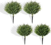 Set of 4 Artificial Cypress Topiary Outdoor Plants with Metal Spike 20", UV Resistant Faux Cedar Shrubs, Fake Shrubs Plants for Front Porch,Garden, Yard, Porch, Patio Decor
