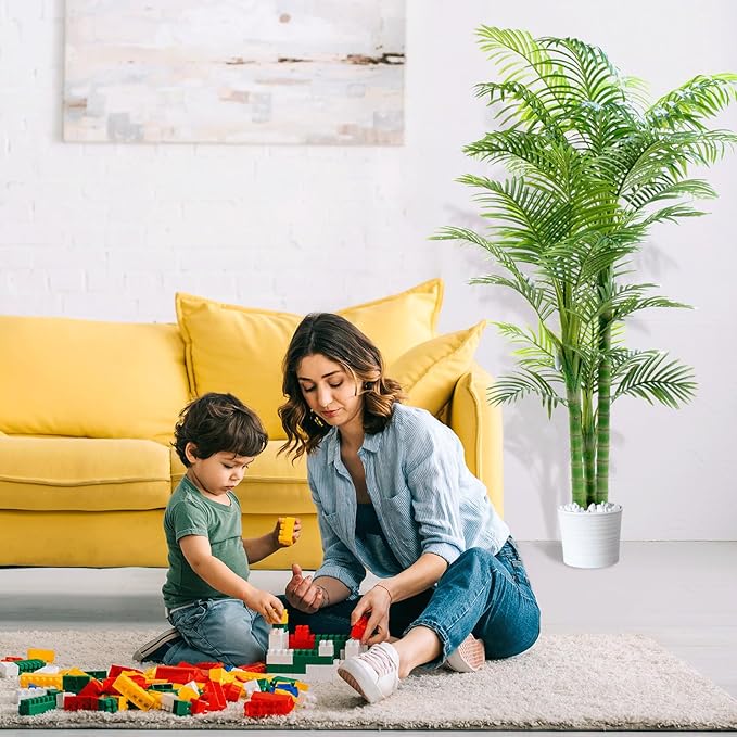 6FT Artificial Areca Palm Tree – Realistic Faux Indoor & Outdoor Plant with Weighted Pot, UV Resistant & Easy Assembly Plastic Tropical Tree for Home or Office Décor Housewarming Gift