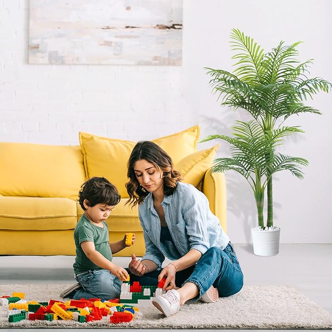 5FT Artificial Golden Cane Palm Tree – Realistic Faux Indoor & Outdoor Plant with Weighted Pot, UV Resistant & Easy Assembly Plastic Tropical Tree for Home or Office Décor