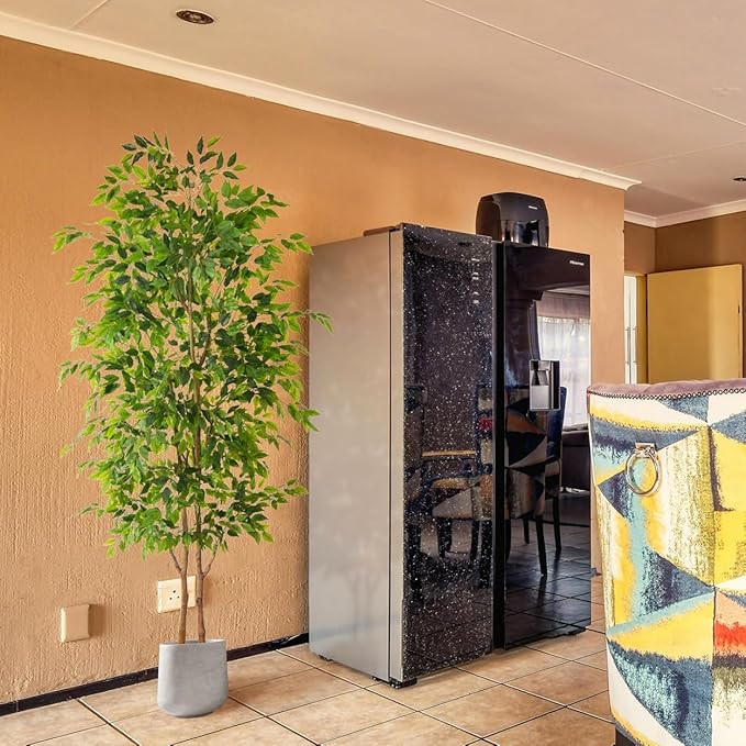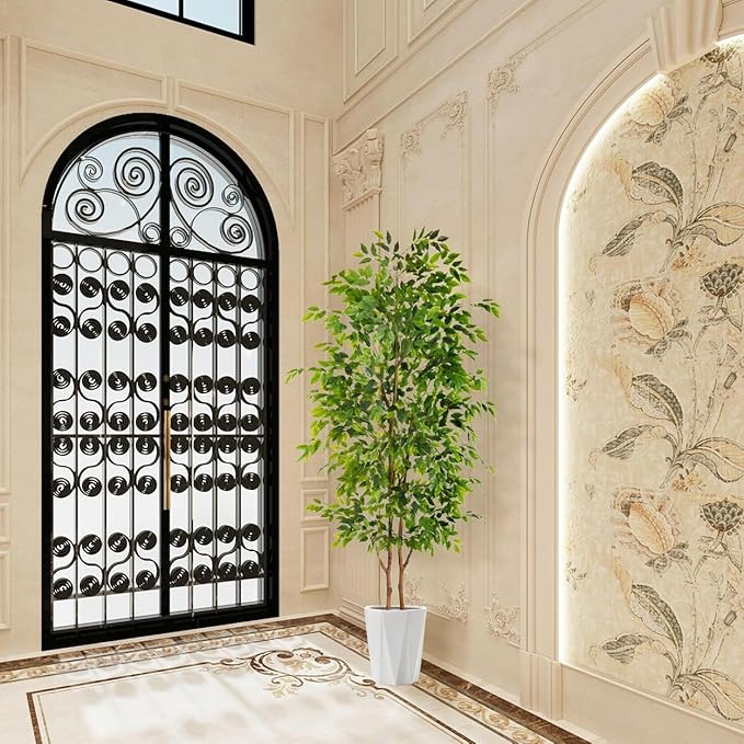 8ft Artificial Ficus Tree, 96” Realistic Ficus Leaves Large Fake Plant with Basket, Indoor Outdoor Potted Faux Tree for Home Garden Office House Livingroom Décor