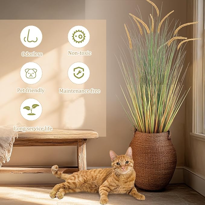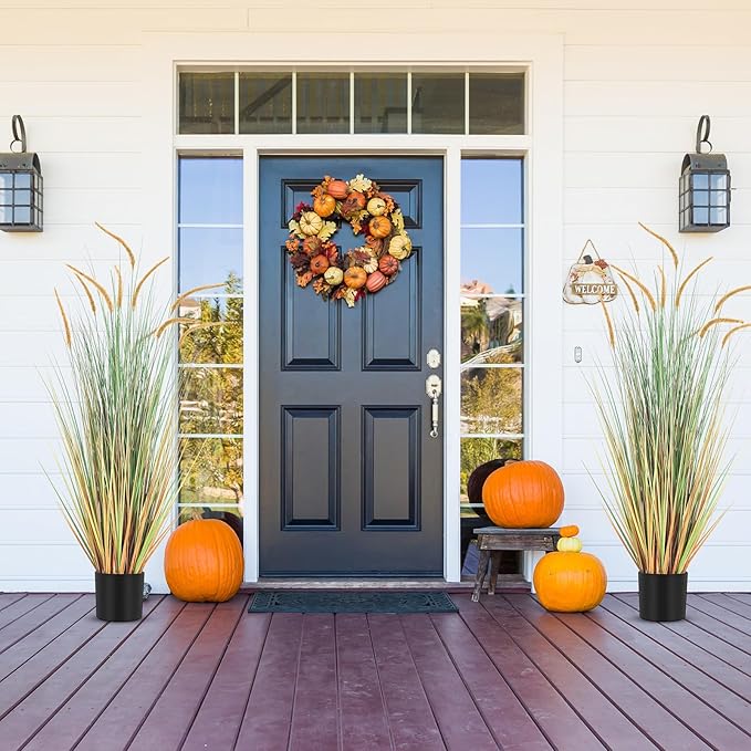 Jexine 2 Pieces Faux Plants Outdoor 4 ft Tall Artificial Grass Plant Potted Artificial Setaria Grass Faux Greenery Floor Plants for Housewarming Gift House Garden Bathroom Lobby Outdoor (Autumn Green)