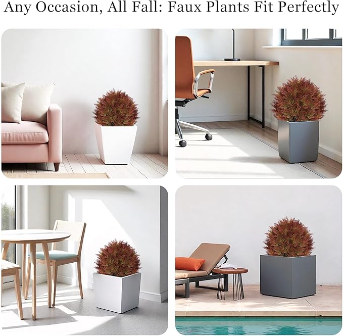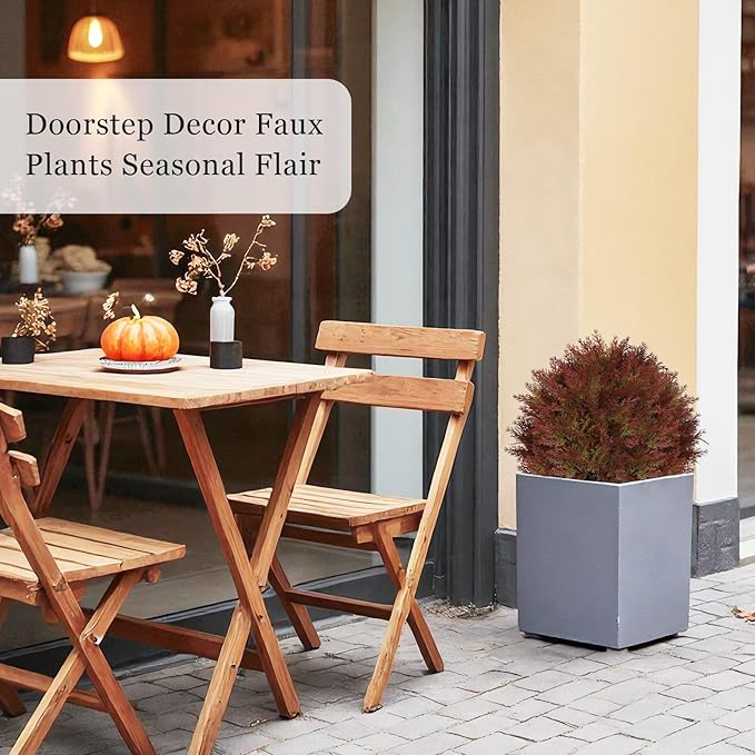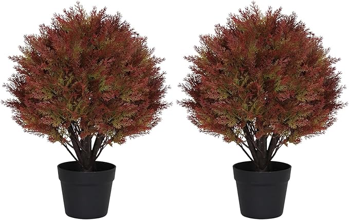 24" Faux Cedar Trees for Outdoor Planters, Artificial Topiary Ball Plants UV Resistant, Fake Bushes & Shrubs for Front Porch, Patio, Fall Decor, Set of 2