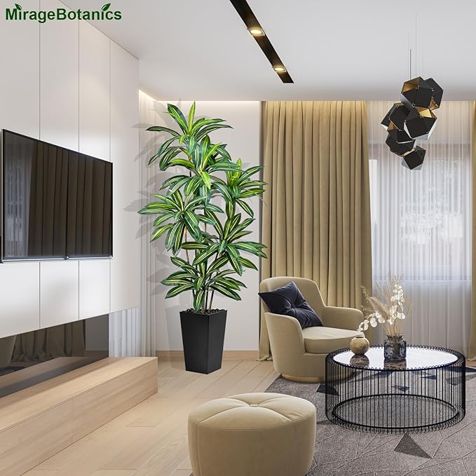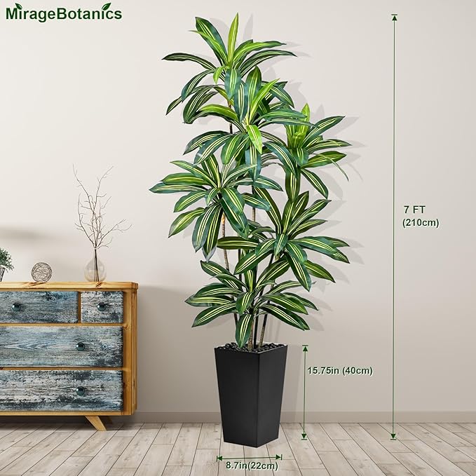 Artificial Dracaena Tree 7FT Tall Fake Plant with White Pot - Realistic Faux Dragon Tree with Tall Planter - Indoor Floor Plant for Home, Office,Mall, Living Room, Bedroom Decor (Black - Planter, 7ft)