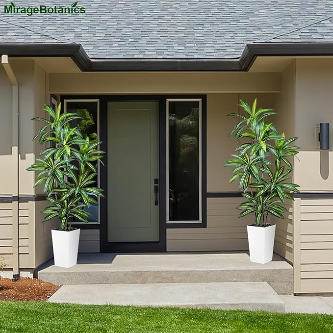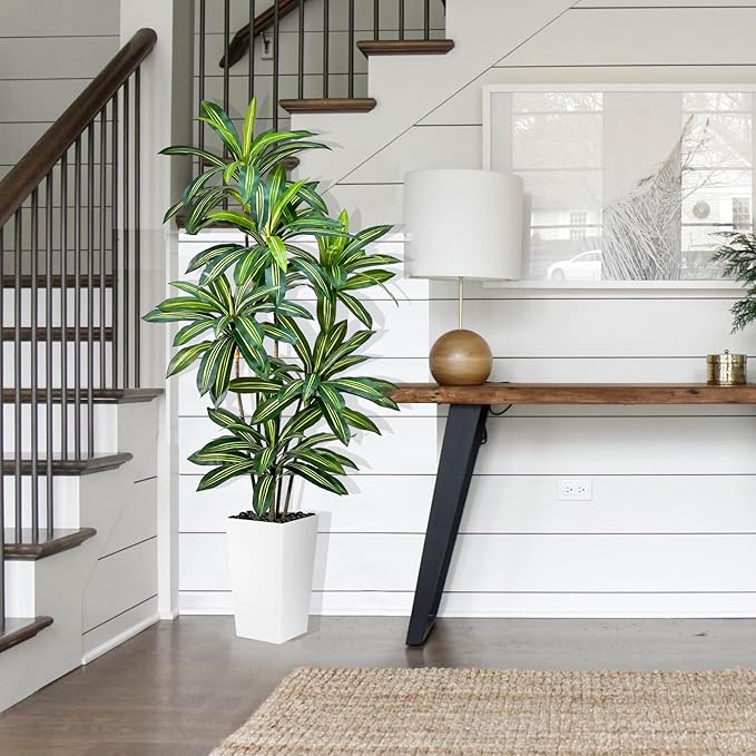 Artificial Dracaena Tree 6FT Tall Fake Plant with White Pot - Realistic Faux Dragon Tree with Tall Planter - Indoor Floor Plant for Home, Office,Mall, Living Room, Bedroom Decor (White - Planter, 6ft)