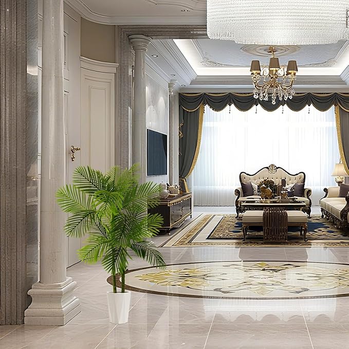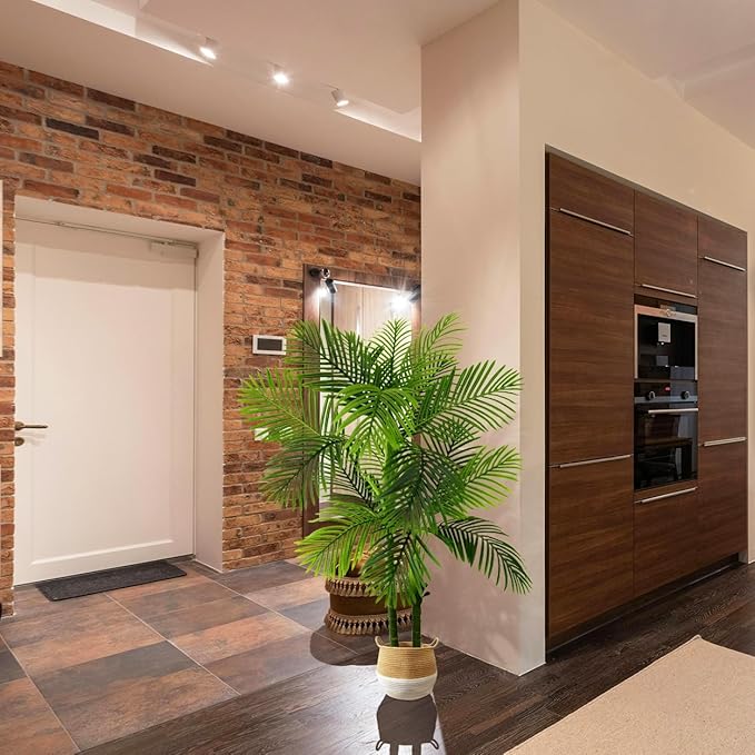 Artificial Palm Tree, 5ft Golden Cane Faux Palm Plant with Basket, Large Phoenix Palm UV Resistant Fake Plants for Indoor Outdoor Home Garden Patio Office Décor