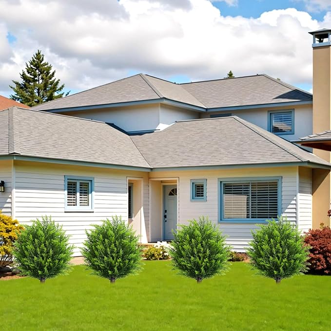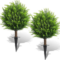 26.5" Artificial Cedar Topiary Ball Trees, Set of 2 UV Resistant Fake Evergreen Trees Shrubs Bushes Artificial Plants with Ground Spike Faux Cypress Plants for Indoor Outdoor Front Porch Garden
