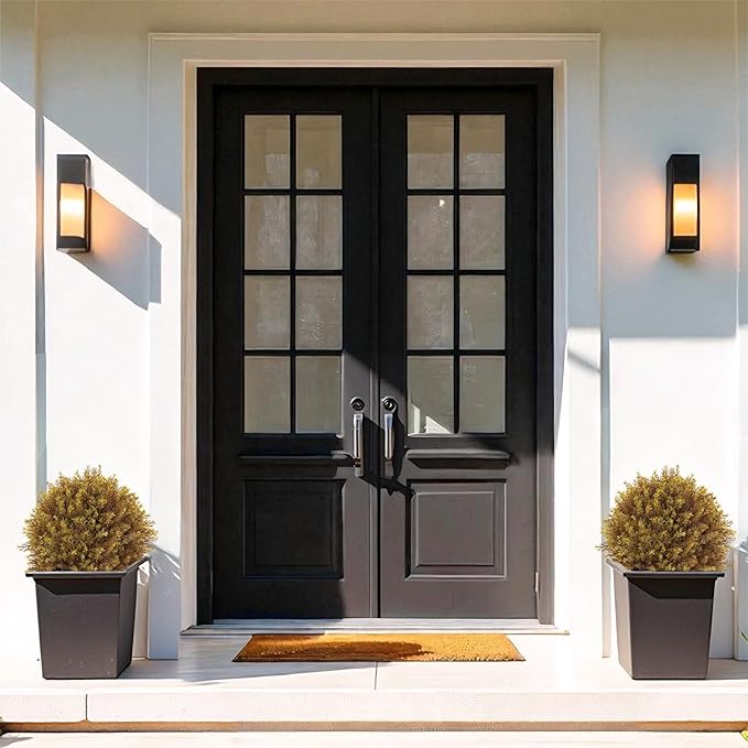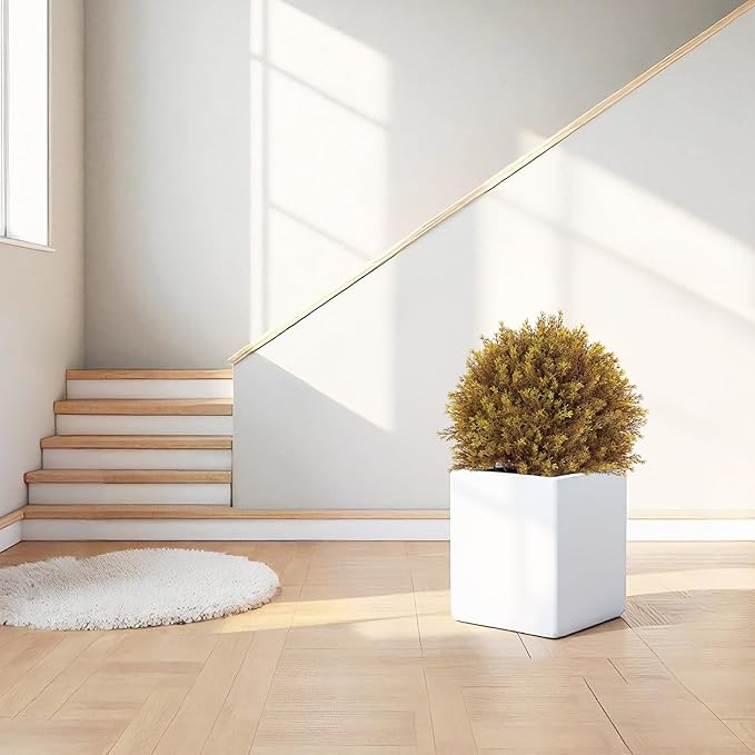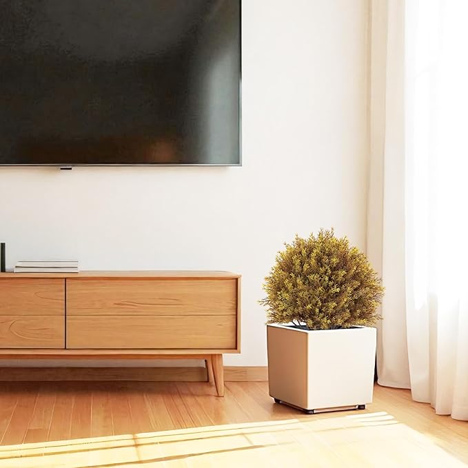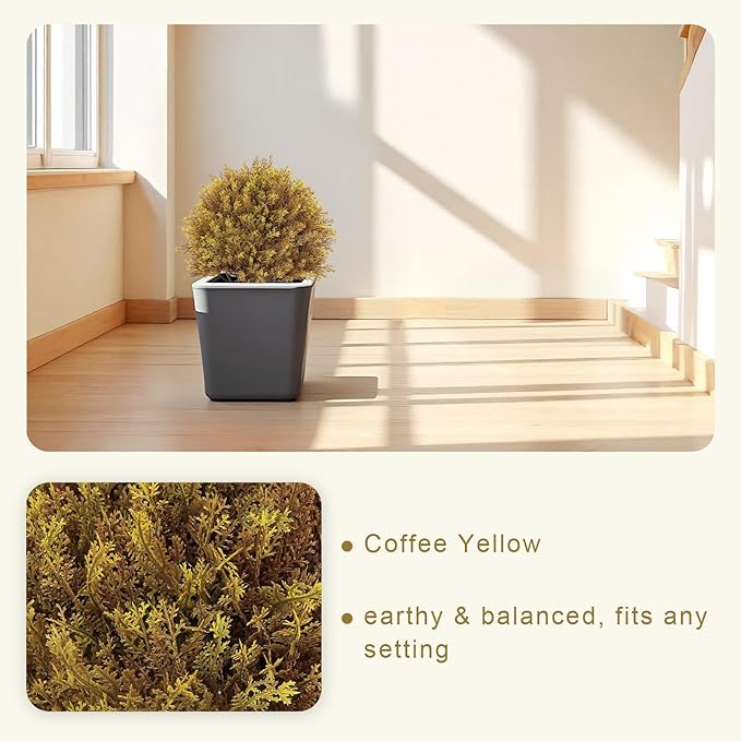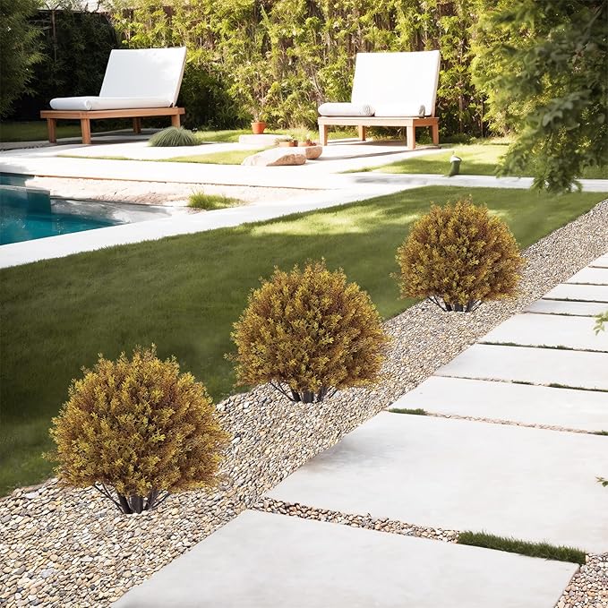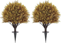 27" Fall Cedar Topiary Trees Artificial Outdoor, Set of 2 Faux Bushes and Shrubs with Ground Spike, UV Resistant Realistic Large Fake Ball Plants for Front Porch Outside Planters Backyard Decor
