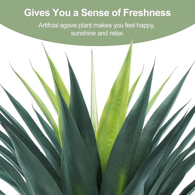 3.5ft Artificial Agave Plant, 42 Inch Tall Faux Agave Plants in Black Pot, Fake Floor Plant Outdoor Indoor for Front Porch Patio Home Office Door Step Hotel Desert Style Decor 2PCS