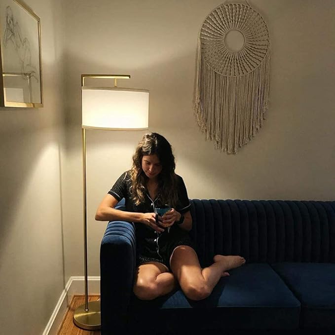 Brightech Montage Modern Floor lamp, LED Floor Lamp for Living Rooms & Offices - Tall Standing Lamp for Bedroom Reading - Corner Pole Lamp for Contemporary Home Decor - Gold, Antique Brass