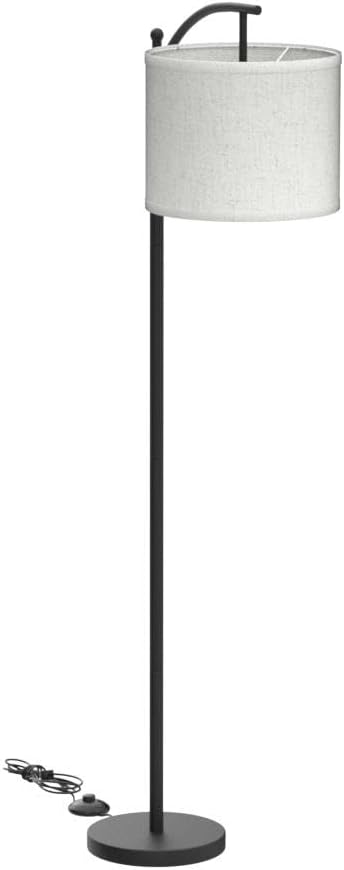 DLLT Modern Arc Floor Lamp, Farmhouse Standing Floor Lamps with Lantern Lampshade, Industrial Tall Reading Light for Bedroom Living Room Office Study, 3 Color Temperatures, Black, 8W Bulb Included
