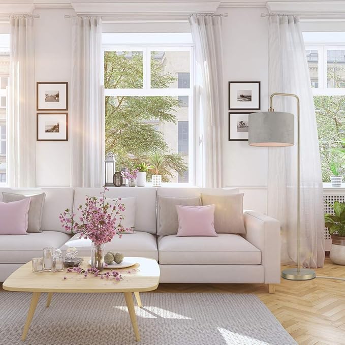 Globe Electric 67398 Barden 58" Floor Lamp, Brass, Light Gray Velvet Shade, On/Off Socket Rotary Switch