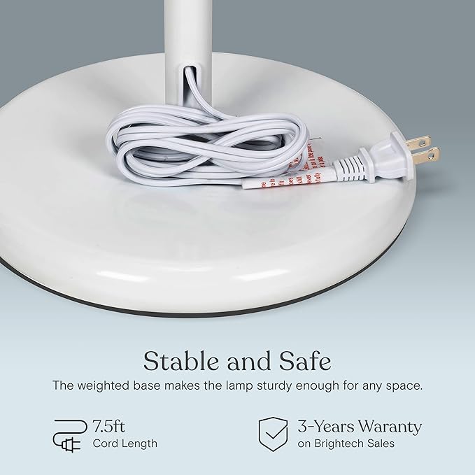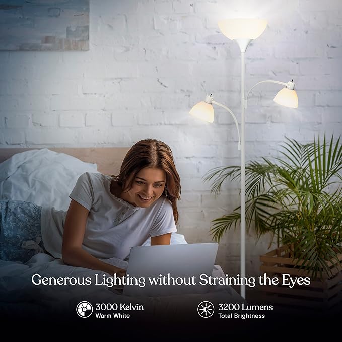 Brightech Sky Dome Double – High Brightness Torchiere Floor Lamp with 2 Reading Lights for Living Rooms, Bedrooms – Replace Halogen Standing Lamps with Efficient LED Office Lighting - Tall White Pole