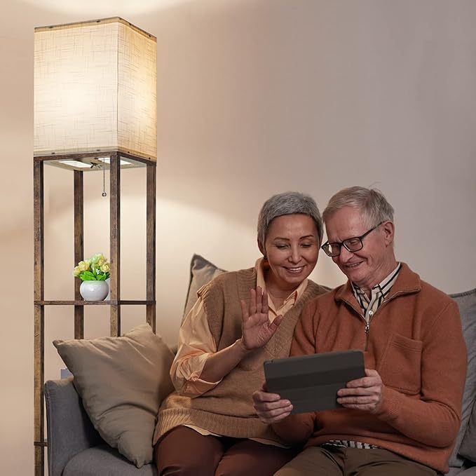 Dott Arts Floor Lamp with Shelves, 3 Color Temperature LED Bulb, Wood Texture, Storage, Brown
