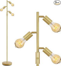 BoostArea Tree Floor Lamp, Brass Gold Industrial Floor Lamp, Modern Standing Lamp with Adjustable 3 Light, E26 Socket, Rotary Switch, Boho Stand Up Lamp Pole Lamps for Living Room, Bedroom (No Bulbs)