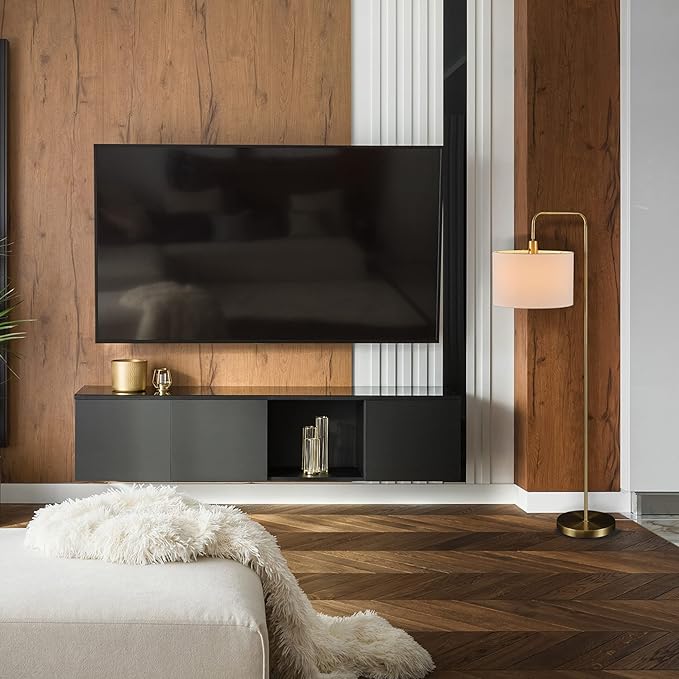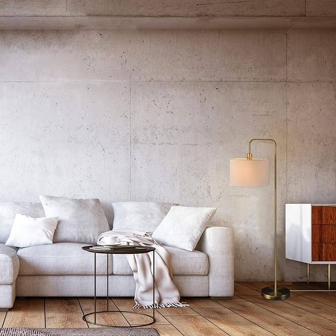GLOBE Electric 61000021 58" Floor Lamp, Brass, White Linen Shade, On/Off Rotary Switch on Socket, Living Room Decor, Standing Lamps, Tall Lamp for Living-Room Corner
