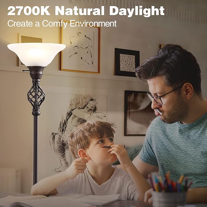 Torchiere Floor Lamp for Living Room, LED Standing Reading Light for Bedroom with Glass Shade for Living Room Corner Bedroom Home Office,Bulbs Included (Red Brown,Glass 1 Head)