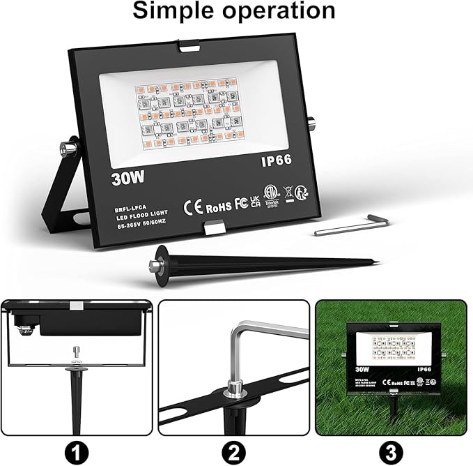 LED Flood Lights RGB Color Changing 300W Equivalent Outdoor, 30W Bluetooth Smart RGB Floodlight APP Control, 2700K&16 Million Colors for Garden Stage Lighting 4 Pack with Metal Ground Spikes Stakes