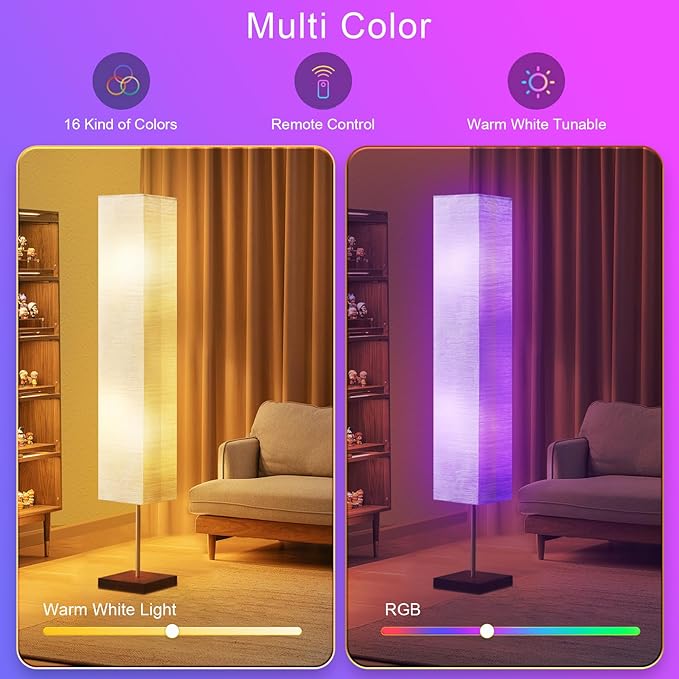 GyroVu 65“ Floor Lamp for Living Room, RGB Color Changing-2700K-6000K Corner Floor Lamp Standing Lamp for Living Room, Tall lamp with Remote Control for Bedroom, Office Beige(Bulbs Included)
