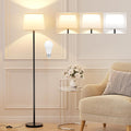 FOLKSMATE Floor Lamp for Living Room, Modern LED Simple Standing Lamp, Minimalist Tall Light for Bedroom, Office, Kids Room, Reading, Black Pole With Grey Shade, Without Bulb