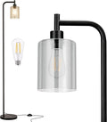 ONEWISH Floor Lamp for Living Room - Minimalist Industrial Standing Lamp with Modern LED Bulb, Globe Black Clear Glass 6", 1800K Warm Ambiant Lighting Decorative Tall Floor Lamp for Bedroom Office
