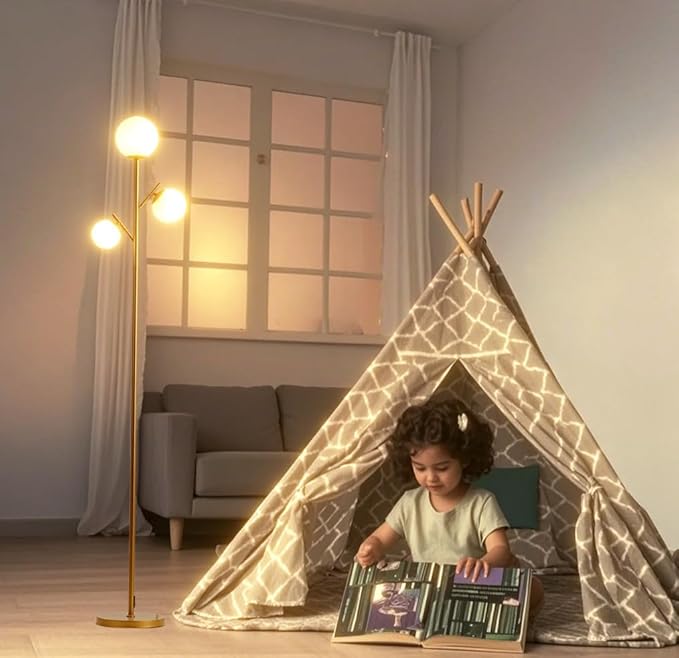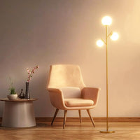 Fiqevs 3 Globe Mid Century Floor Lamp, Vintage Standing Lamp with 3 LED Bulbs & Sphere Frosted Glass Shades, Modern Gold Tree Floor Lamp for Living Room, Bedroom, Office