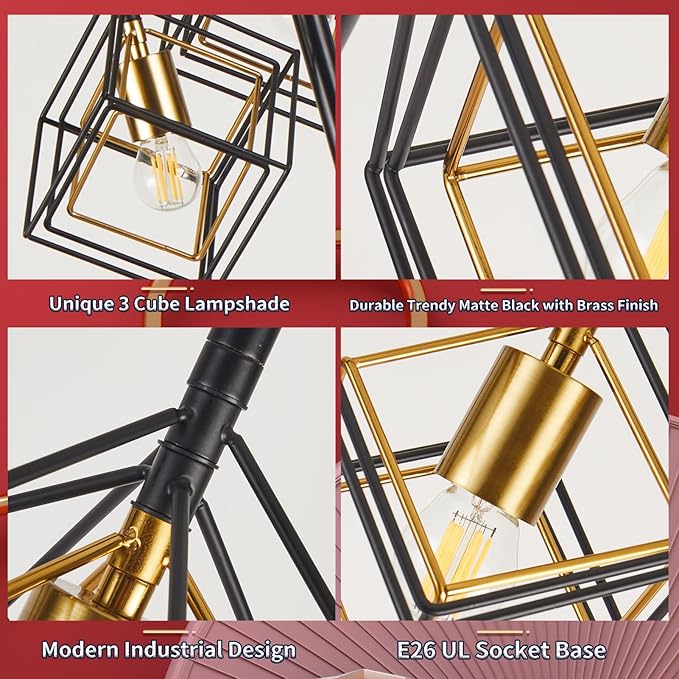 Dimmable Farmhouse Floor Lamp for Living Room, 3 Light Rustic Standing Tall Lamp, Modern Bright Floor Lamp, Industrial Standing Lamp for Bedroom, Tall Pole Lamps Office, 3 LED Bulbs Included.