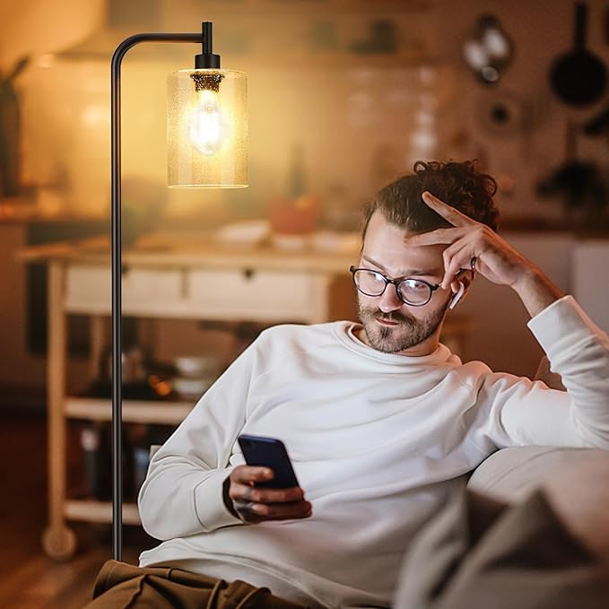Floor Lamps for Living Room - Standing Lamp with Seeded Glass Shade, Modern Floor Lamp with LED Bulbs, Industrial Floor Lamp for Bedroom, Black Tall Lamp for Office(Light Bulb Included)