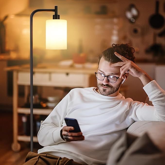 Floor Lamps for Living Room - Standing Lamp with Frosted White Glass Shade, Modern Industrial Floor Lamp with LED Bulbs, Black Tall Lamp for Bedroom Office(Light Bulb Included)