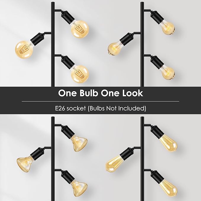 BoostArea Floor Lamp, Industrial Floor Lamp, Modern Tree Standing Lamp with Adjustable 3 Light, E26 Socket, Foot Switch, Minimalist Metal Stand Up Lamp Pole Lamps for Living Room, Bedroom (No Bulbs)
