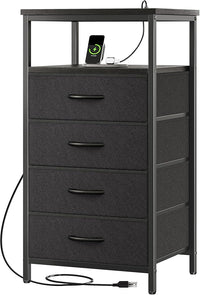 Huuger Night Stand with Charging Station, 4 Drawer Dresser for Bedroom, Bedside Table, 33.9 Inch Tall Nightstand with Open Shelf, End Table, for Closet, Entryway, Bedroom, Black 8055BC Sale