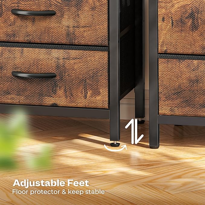 Huuger 5 Drawers Dresser with Charging Station, Dresser for Bedroom, Tall Night Stand, Chest of Drawers with Open Shelf, Bedside Table Nightstand, Fabric, for Entryway, Rustic Brown