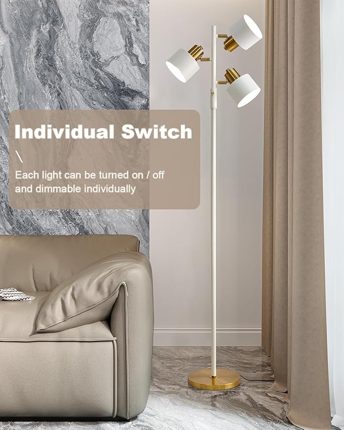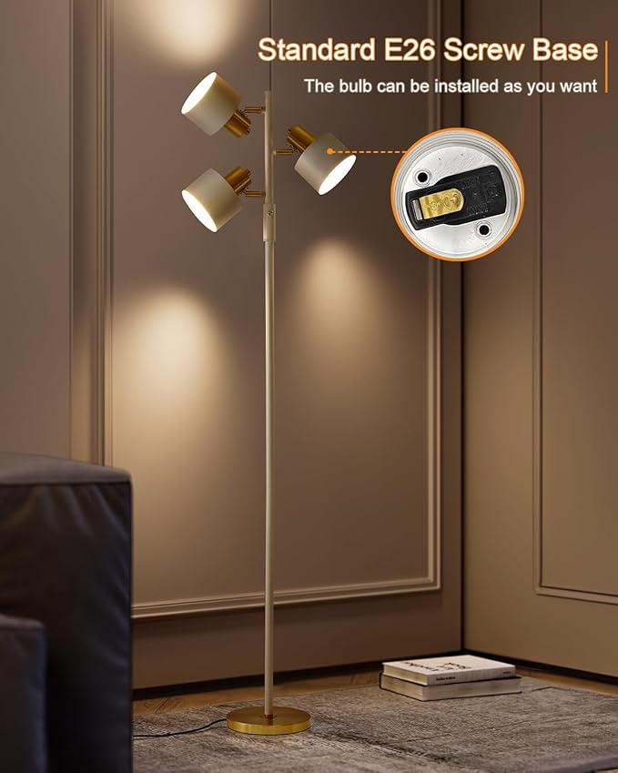 OYEARS Floor Lamp for Living Room Bright Lighting Tall Modern Industrial Vintage Standing Corner Lamps LED Metal Light Office Bedroom Study Gold Black Cream Matte Accent (3-Light, Cream)
