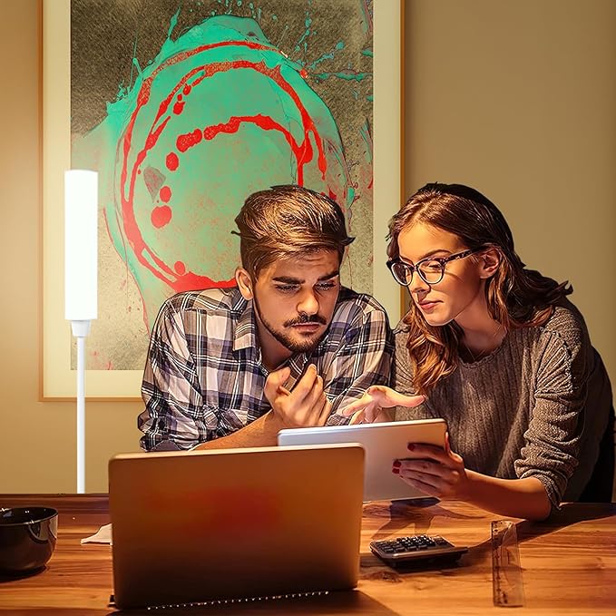 Floor Lamp with Remote Control,Bright Floor Lamps for Living Room/Bedroom/Office, Stepless Adjustable 3000K-6000K Colors and 10-100% Brightness,Standing Light with Foot Switch (White)