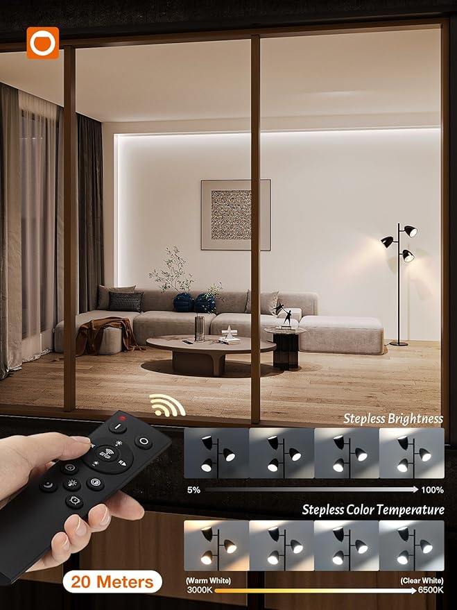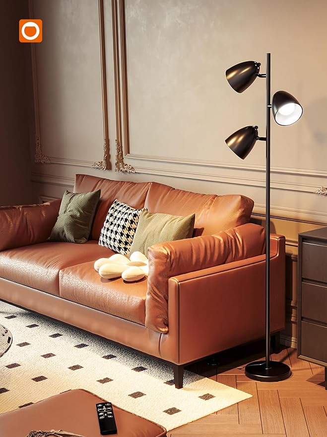 addlon Tree Floor Lamp with Remote, 3 Adjustable Rotating Light and Matching LED Bulbs, Standing Tall Pole Lamps for Living Room, Bedroom, Home, Office - Black