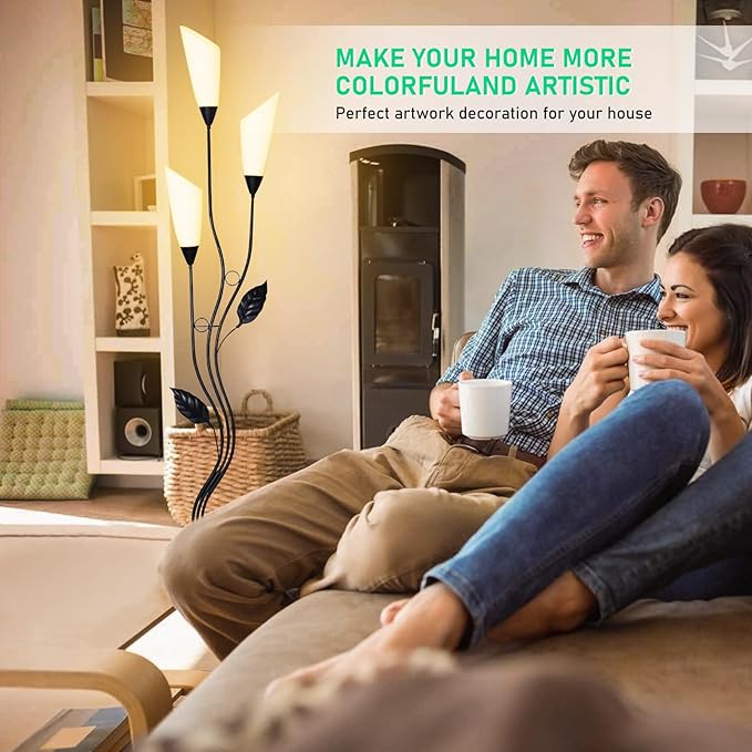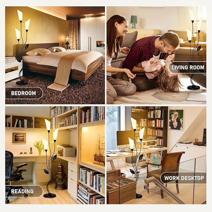 JBZ Flower Floor Lamp for Living Room, 62" Tall Pole Lamp with Foot Switch, with 3 Heads Dimmable LED Lamps for Farmhouse Rustic Bedroom Office, with Plug and 1200LM, 3 Color Temperatures E27