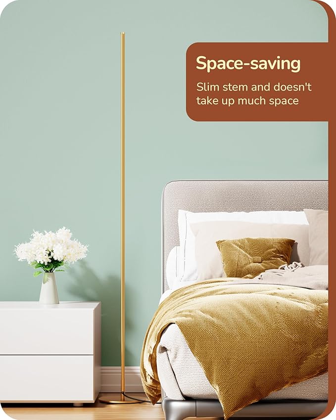 EDISHINE LED Corner Floor Lamp with Remote, 57.5" Minimalist Dimmable Corner Light, Tall Floor Lamps for Living Room, Bedroom, Office, 3000K Warm White Light (Gold) Sale