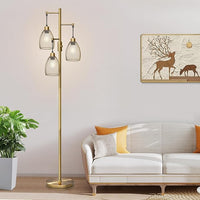 Dimmable Floor Lamp, 3 x 800LM LED Edison Bulbs Included, Farmhouse Industrial Floor Lamp Standing Tree Lamp with Elegant Teardrop Cage Tall Lamps for Living Room Bedroom Office Dining Room-Brass