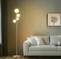 Fiqevs 4 Globe Floor Lamp for Living Room, Modern Standing Lamp with Frosted Sphere Glass Shade, 3000K Warm Light LED Bulbs Included, Tall Tree Lamp for Bedroom, Home & Office - White