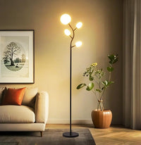 Fiqevs 4 Globe Floor Lamp with 2700K Warm Light LED Bulbs Included, Mid Century Modern Tree Standing Lamp with Frosted Glass Shade, Arc Torch Tall Lamp for Living Room, Bedroom, Office, Matt Black